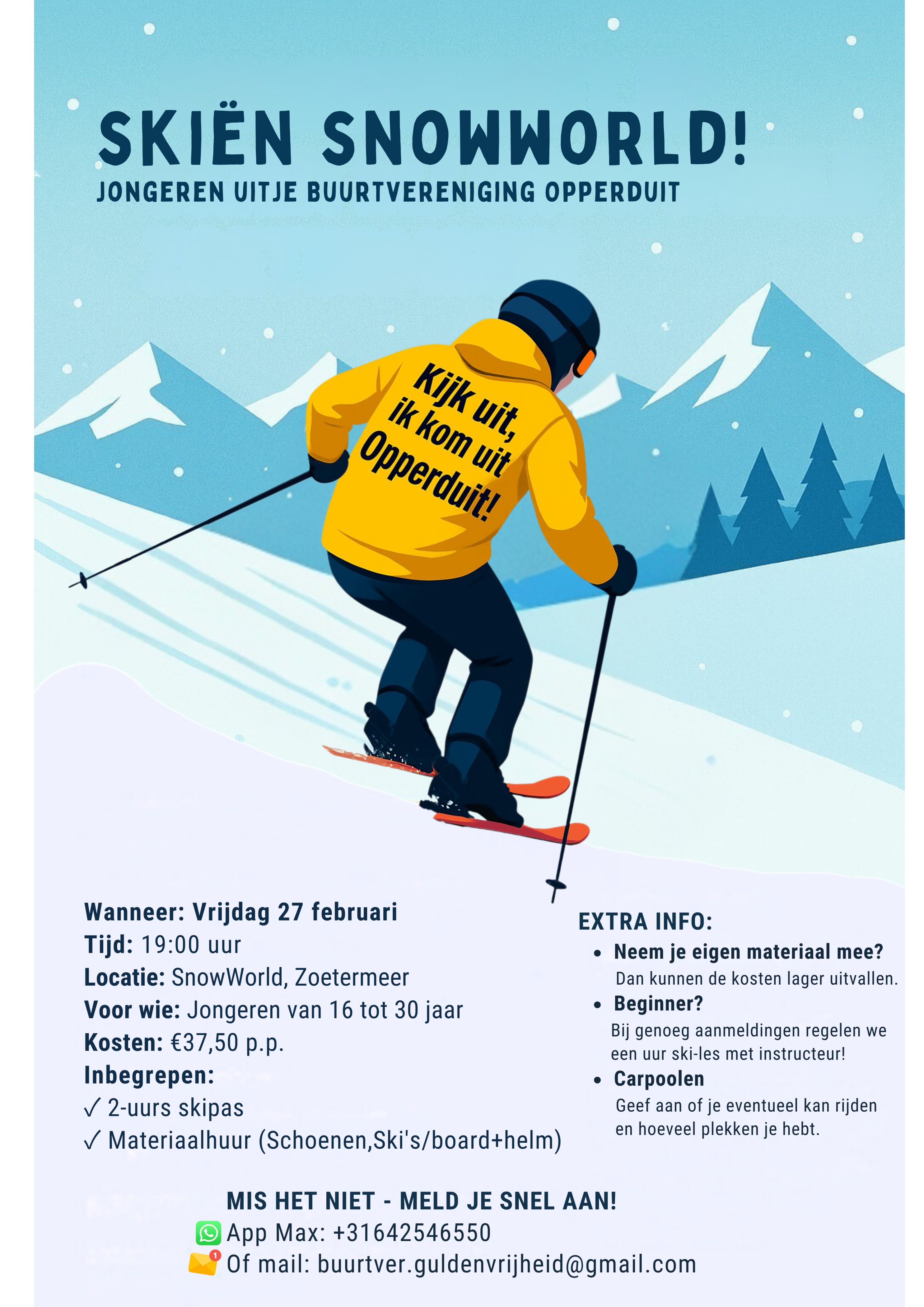Eind februari staat er een jongeren uitje voor de deur. Zie de Flyer een geef je op!